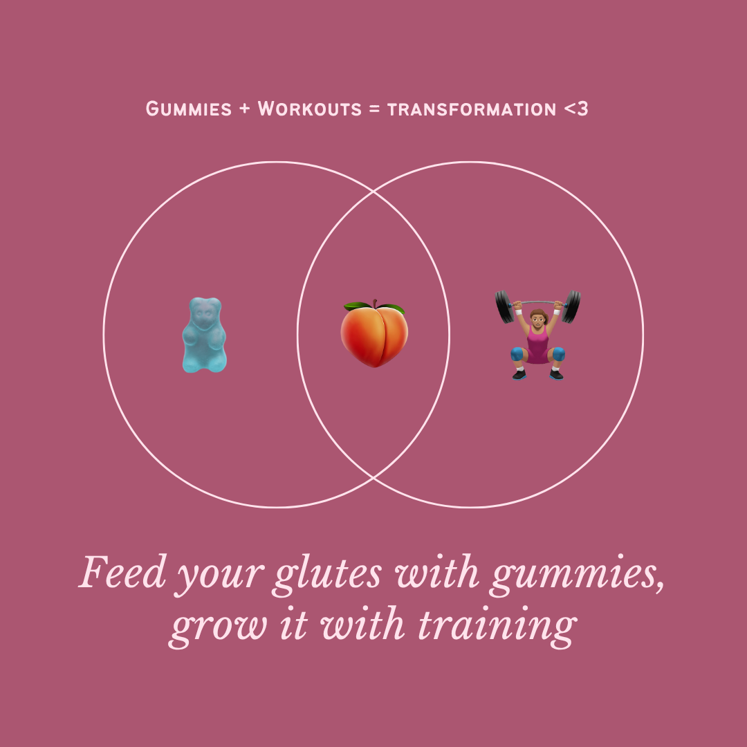 Blueberry-infused fitness gummies with Fenugreek, Wild Yam, Maca Root, and key vitamins to support a fuller look. Paired with glute workouts, it helps enhance natural curves and boost body confidence.