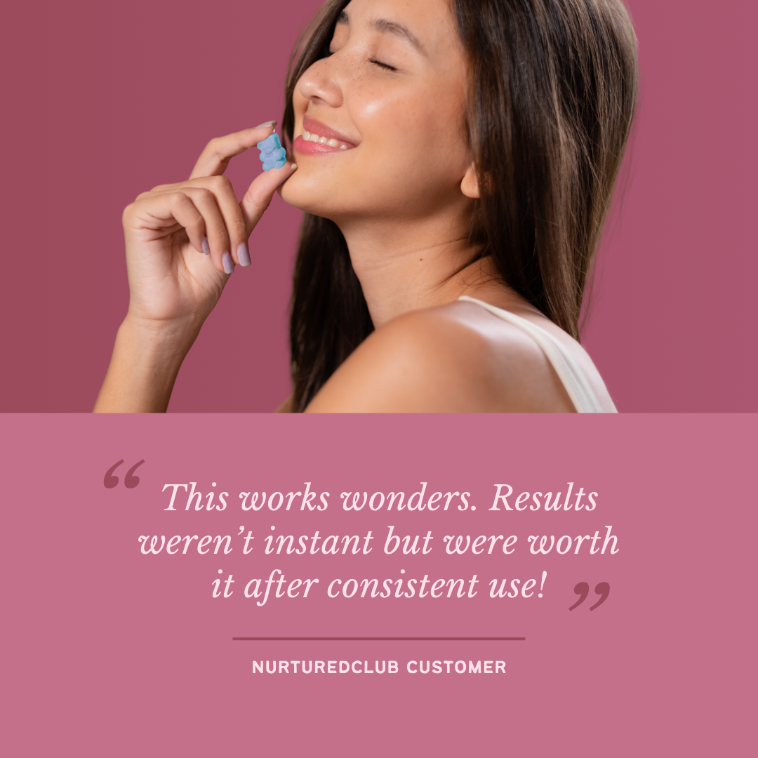 We love gummies because they are way more convenient than powders or capsules, sis! Just pop one of these cute little bears, enjoy the taste, and keep supporting your beautiful body’s natural shape. No mixing, no mess, no fuss—just a simple and enjoyable way to take your daily supplement.